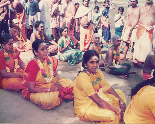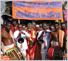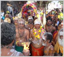 When we started om journey from Thangammapatti & when we were continuing om journeywe came across a small bridge near Othapatti. When we were about to cross the bridge an old man came to us and warned us not to enter the bridge as its filled with algae & fungi which would be dangerous for swamy’s. So he asked us to take right turn. We did as he said & turned back to see the old man but he was not there & we were able to see Murugan in his incannation. Then we continued our journey and reached Palani temple after fourteen days of our Pilgrimage. We finished our darshan and came back to Chennai & did Vasantha Pooja.